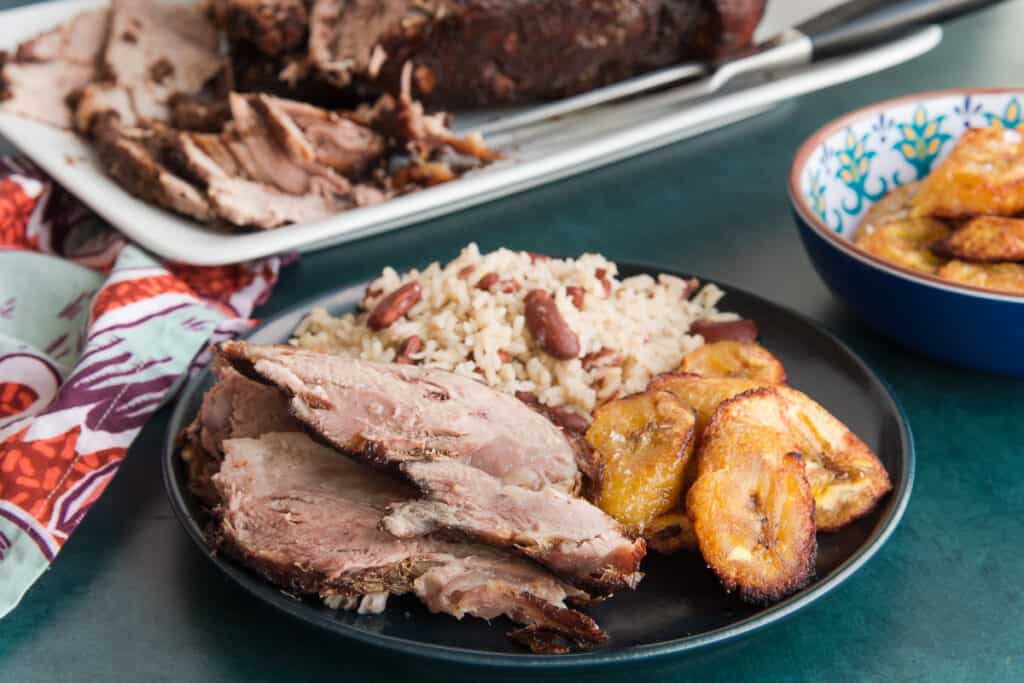 Ingredients (from the circular): Fresh Pork Shoulder ($1.35/lb, page 1) Green Plantains (10 for $3.99, page 1) Garlic (assumed pantry item) Salt +