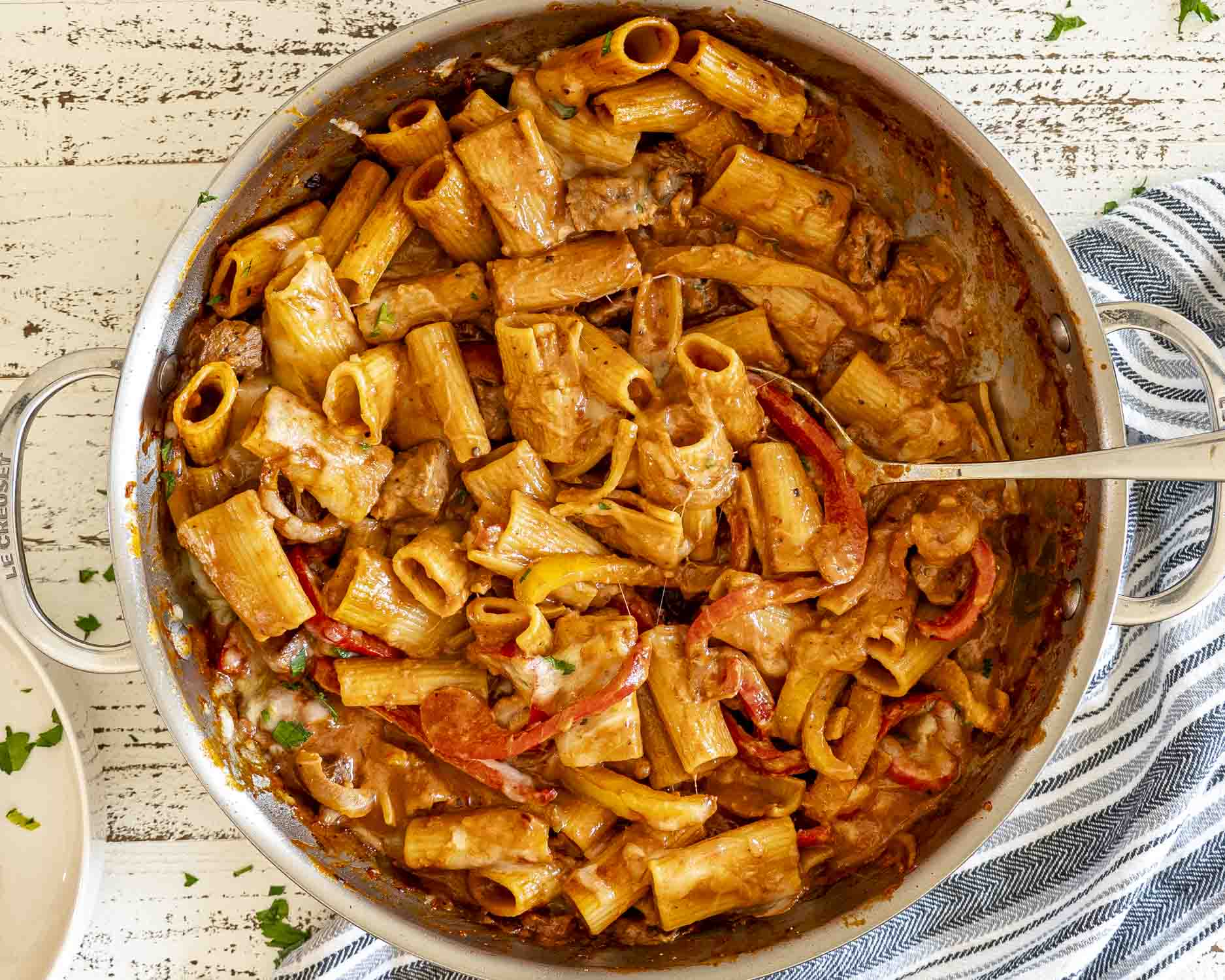 Ingredients (from the circular): Ground Beef ($3.45/lb, page 4) Red Bell Peppers ($2.55/lb, page 1) Barilla Pasta (2 for $5, page 1) Hunt’s